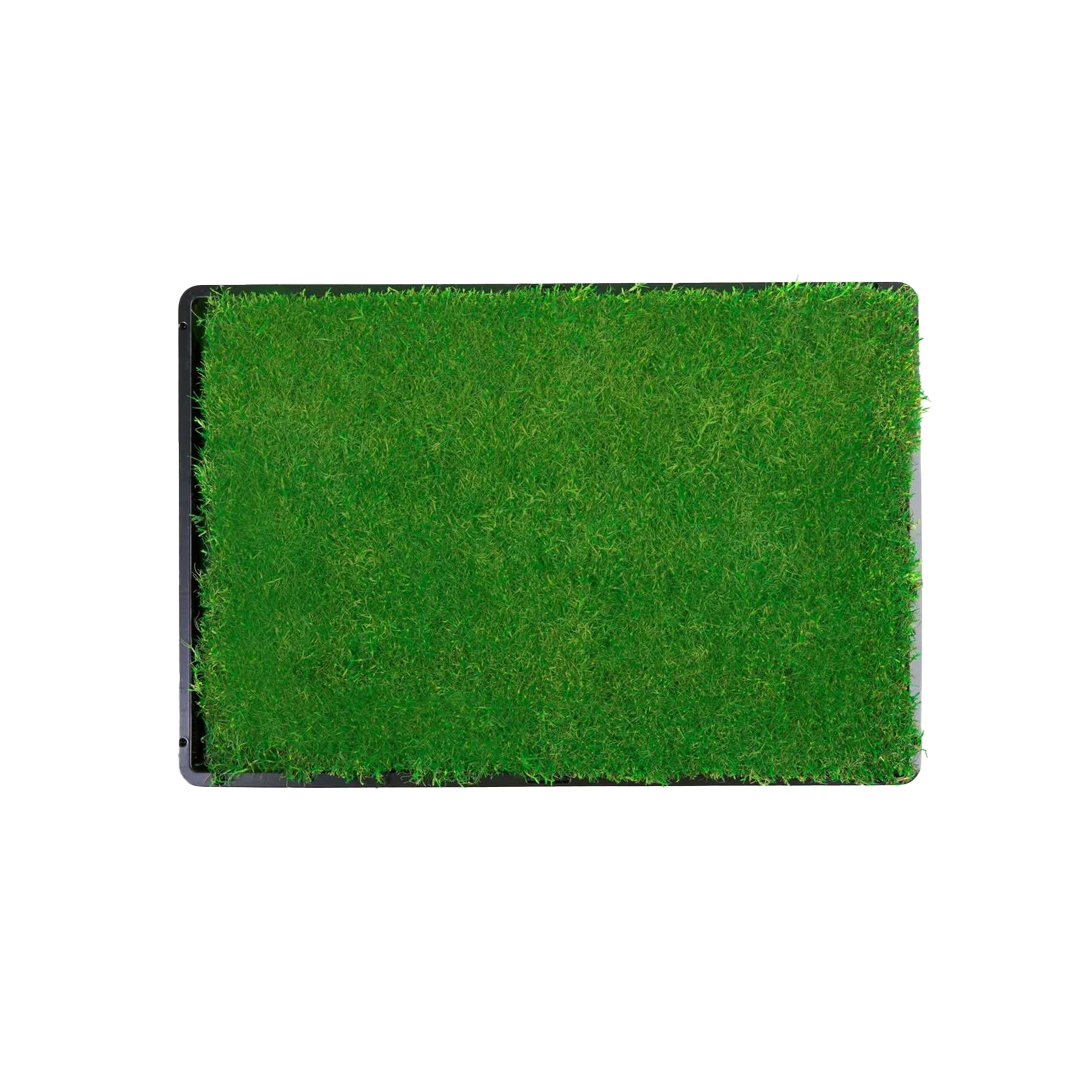 Our Gotta Go Grass® single-pack dog potty grass with tray is an all-in-one package with a single-refill grass pack and a durable plastic tray. Each tray conveniently fits our Gotta Go Grass® 16x24 inches grass pad to prevent accidental spills and ease regular clean-up.